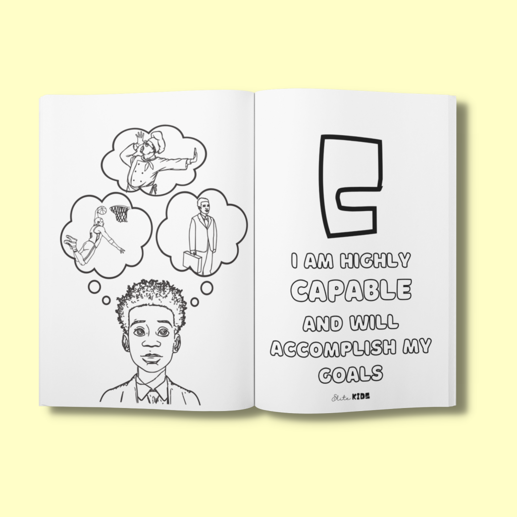 Absolutely! This coloring book goes perfectly with the Elite Kids Affirmation Flashcard set. Purchase as a bundle today!