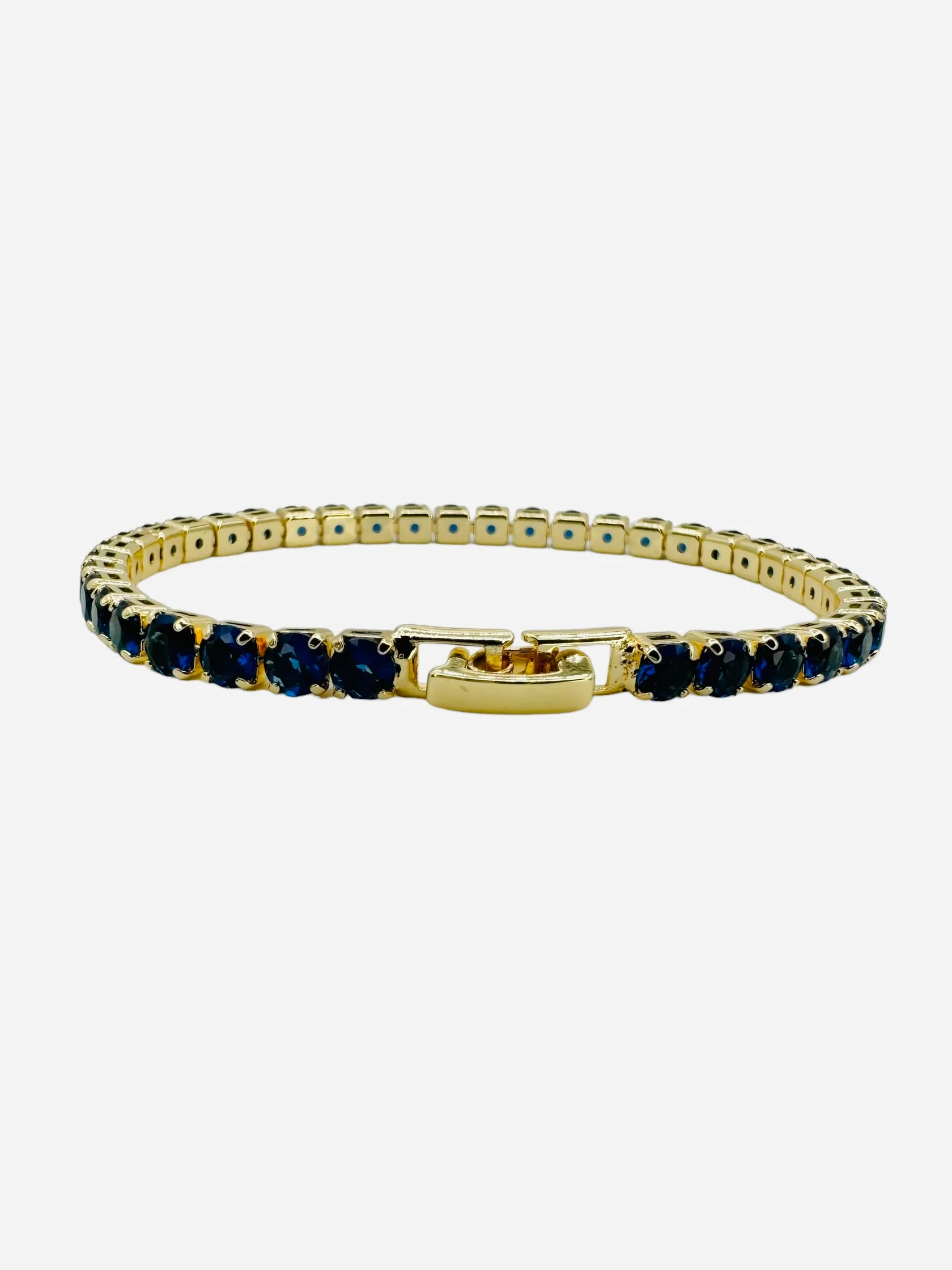 Meticulously crafted to capture both timeless beauty and modern sophistication our Bahama Blue tennis bracelet features vibrant blue cubic zirconia, set in a luxurious gold-filled setting that ensures lasting shine and durability.