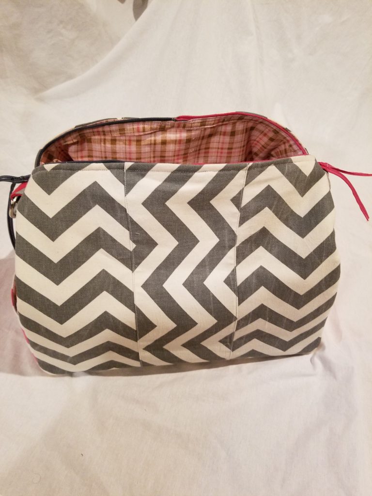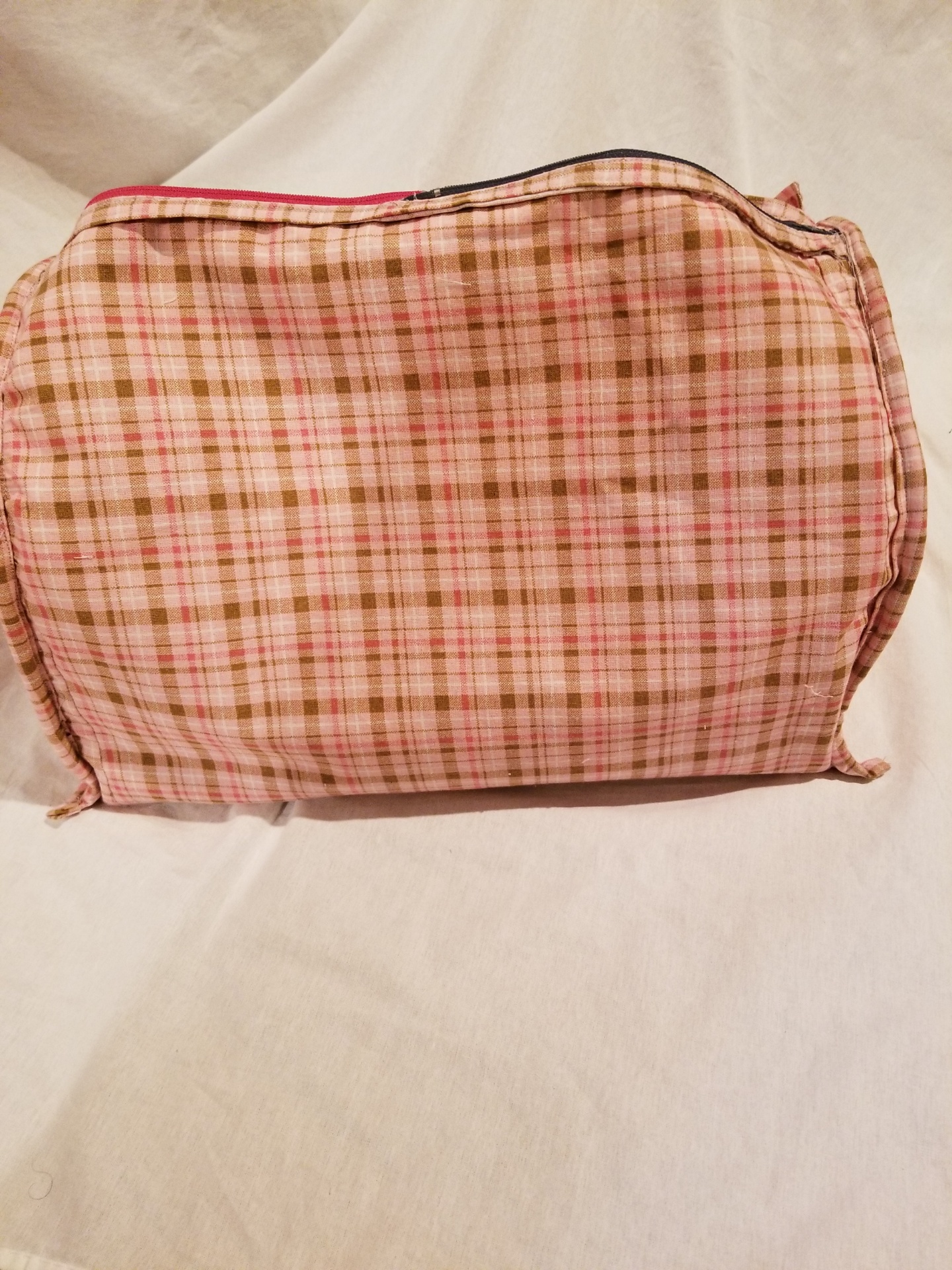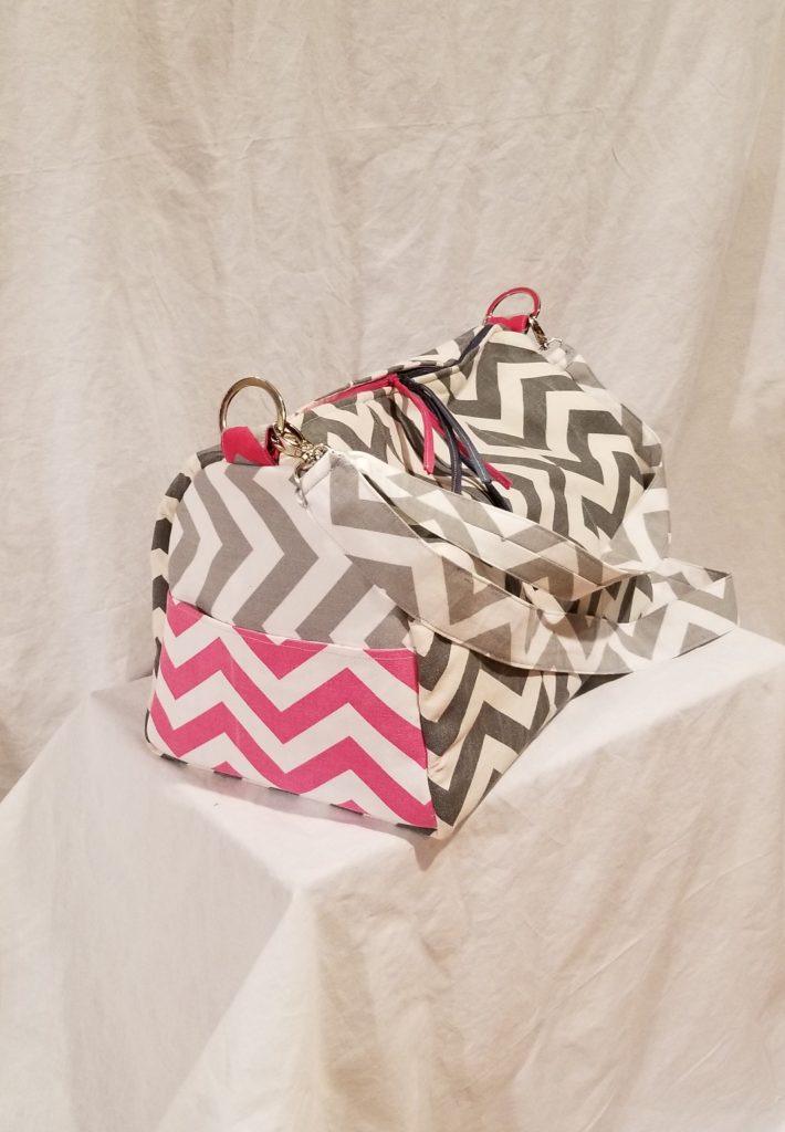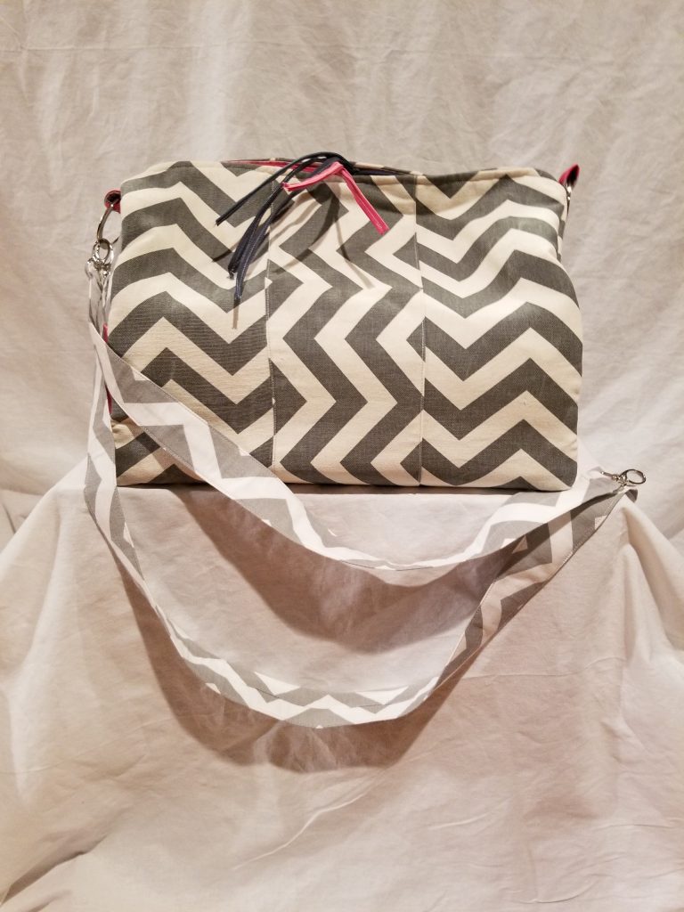 Barrel bag with removable cross body strap. Interior and exterior pockets. Lightweight. Approximately 9x11x5