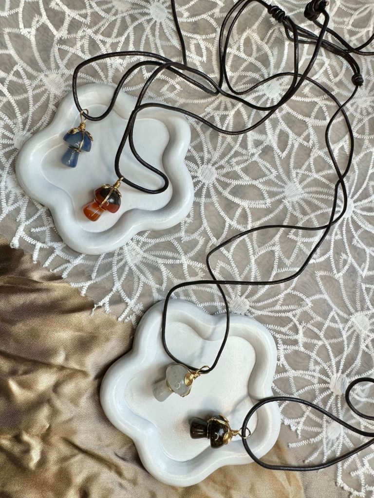 Embrace the beauty of nature with our Carnelian Mushroom Amulet, a unique and enchanting piece that blends organic charm with refined elegance. This exquisite amulet features a delicately craved mushroom shaped carnelian stone, meticulously wrapped in glimmering gold wire for a touch of sophistication.