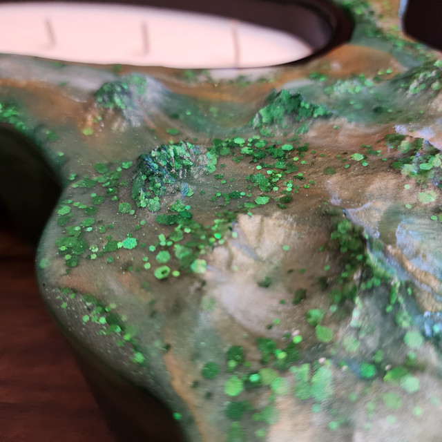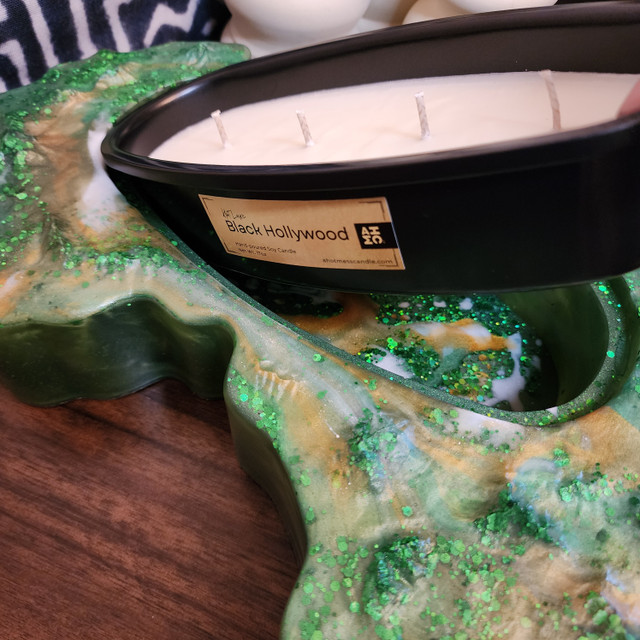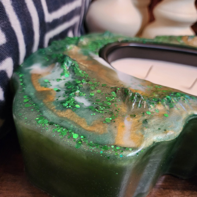Weighing approximately 9 lbs and measuring 14.6 inches at its longest point, Emerald City is ideal for enhancing the ambiance of your living room, bedroom, or office. Once you’ve enjoyed the included candle insert, repurpose this stunning art piece to hold your keys, personal items, or cherished keepsakes, blending beauty with practicality seamlessly.