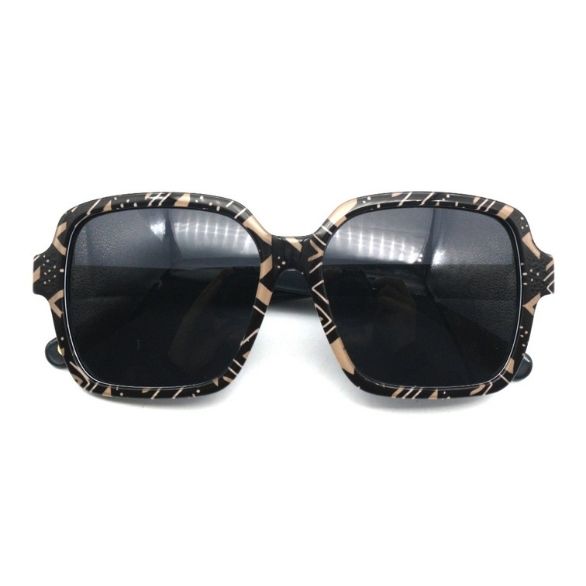 Pharaoh Frames Mudcloth sunglasses are striking oversized frames that blend bold style with cultural richness. Featuring a classic black base adorned with a distinctive black and taupe Mudcloth print provide ample sun protection.