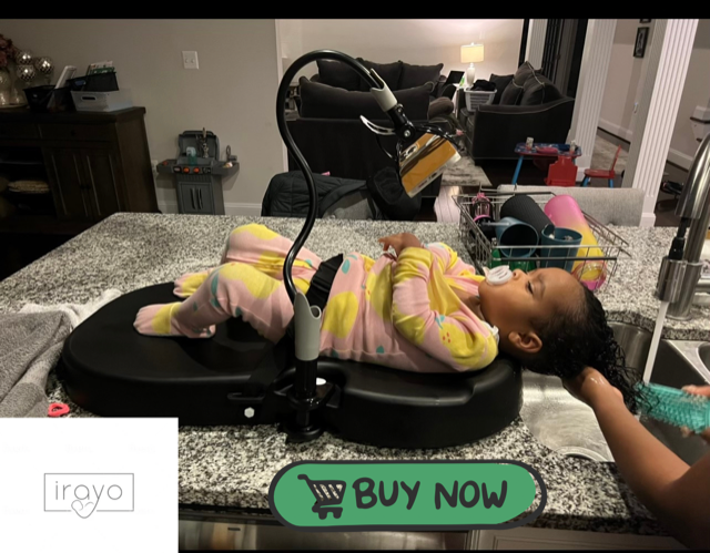 Adjustable phone holder to keep them entertained! With an adjustable phone mount, they can watch shows while you’re washing their hair. You can even use it independently for styling after the wash process!