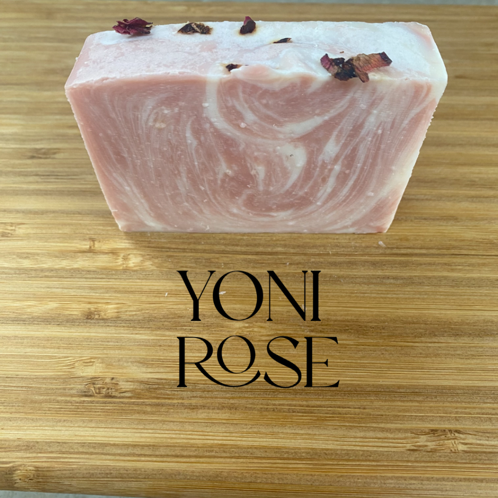 Yoni Rose Soap is our newest variation of our yoni soap. It contains some of the same skin-loving ingredients plus we’ve added Rose Clay for extra-sensitive skin, Rose Toner, and Rose Geranium Essential Oil.