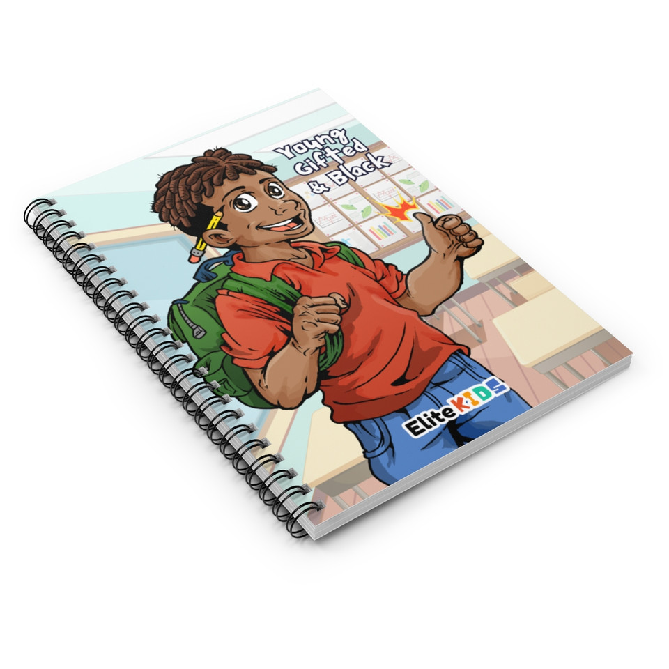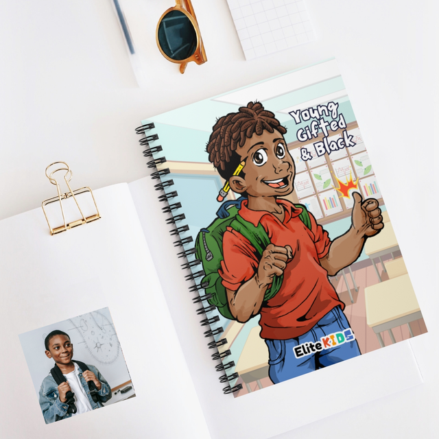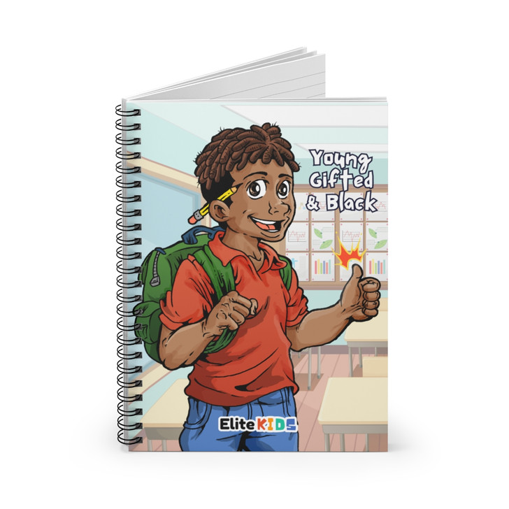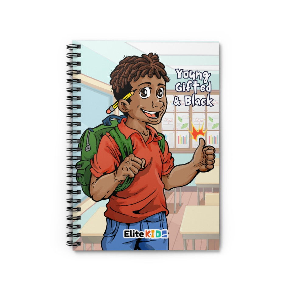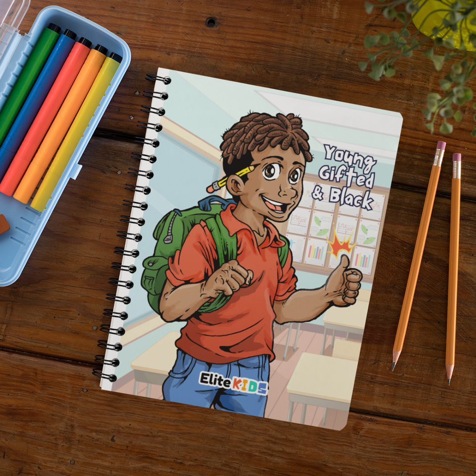 TECH-SAVVY DESIGN: Meet Xavier, the tech-loving, cheerful member of the Elite Kids crew! Now in the 5th grade, Xavier brings his infectious enthusiasm and passion for technology to this beautifully illustrated notebook. Featuring his distinctive baby locs, this vibrant cover showcases the empowering quote “Young, Gifted, and Black,” making it a standout addition to any stationery collection.
