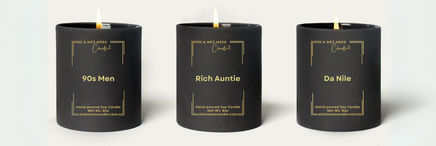 A Hot Mess Candle Co. is a home fragrance brand specializing in scented candles inspired by culture, crafted to ignite your senses and spark conversation. Our fragrances are rich, vibrant, and captivating—anything but average. Each candle takes you on a journey through the past while staying relevant today.